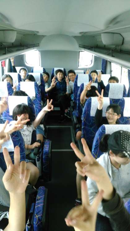 順調にバスは進んでいます。バスの中も修学旅行の思い出に残るエピソードの上位にランクインすることでしょう♪楽しそうな笑い声が聞こえてきそうですね。楽しい旅のはじまりを自分たちでみごとにプロデュースしています。