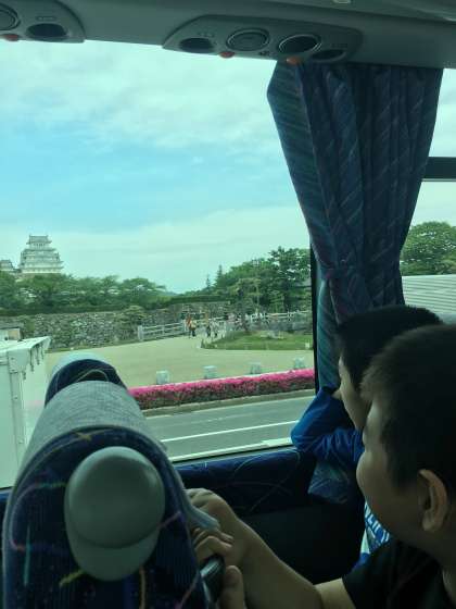 車窓から見える姫路城の大きさに胸が高鳴ります♪これからグループに分かれて見学します。