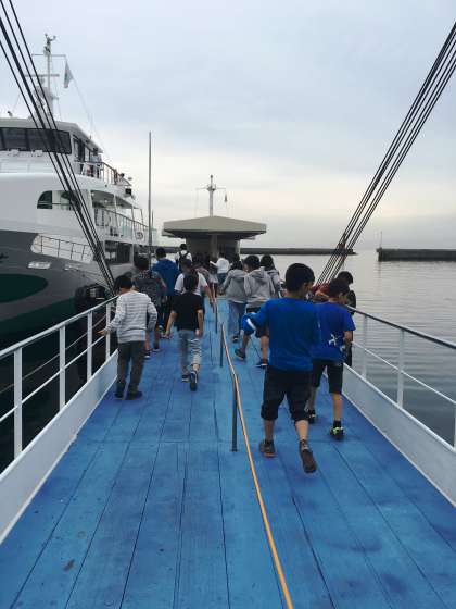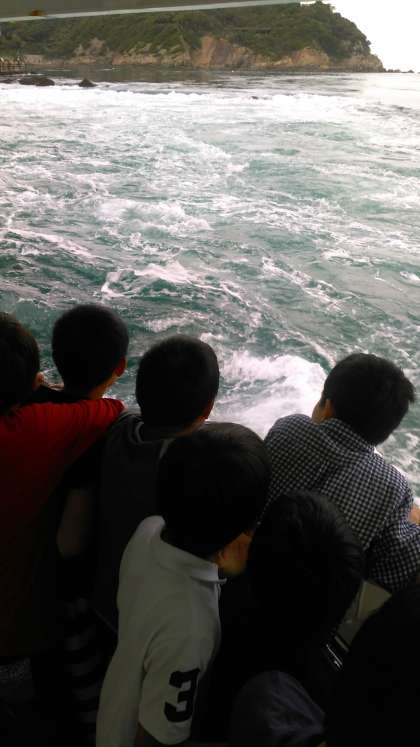 いよいよ船に乗り込み,出航しました!沖へ向かうにつれ,どんどん波が激しさを増してきましたよ。はたして渦潮は見えるのでしょうか?
