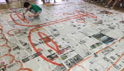 新聞紙に、実際の大きさに合わせて大仏を描いていくと、スケールの大きさや当時の人々の工夫や苦労が感じられました。