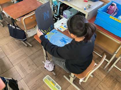 「生き物」をテーマに、版画の作品づくり進めています。彫刻刀の使い方が上達してきて、版画らしい「味」を出すことができています。少しずつ、丁寧に色を付けて、写していきました。