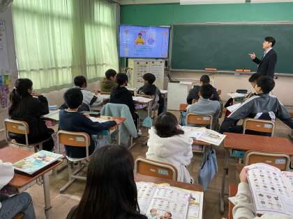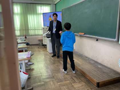 外国語の学習で、コミュニケーション力を高めている5年生。食事の注文や値段を聞き取ったり、おすすめのメニューについて伝え合ったりする練習をしています。まちがいを恐れず、自信をもって学習に取り組んでいます。