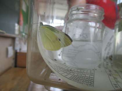 日に日に大きくなった幼虫は、さなぎになりました。そして、ある日、教室に来ると、「チョウになってる!」と。毎日成長を見守っていた幼虫が成虫になり、感動していたみんなでした。せまい中ではかわいそうなので、広い世界に飛び立たせてあげました。