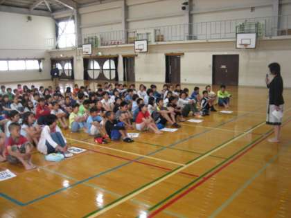 今日の中間休みに部活動の開講式をしました。