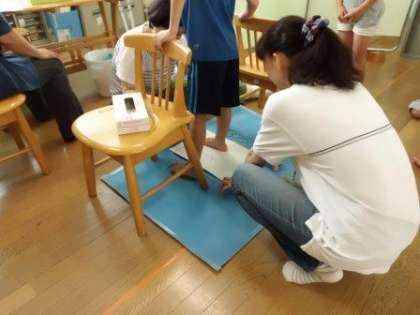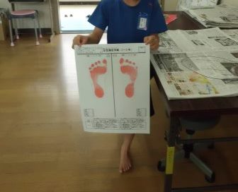 広沢小学校では毎年この時期に足型測定を行っています。足型をとることによって,土踏まずができているか,浮き指はないか等を見ることができます。