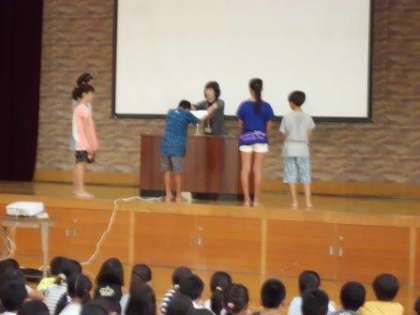 最後に,夏休みモードから学校モードに切り替えるために,広沢小学校の児童みんなで「百点満点のあいさつ」と「廊下などを歩くこと」を頑張っていこうというお話がありました。