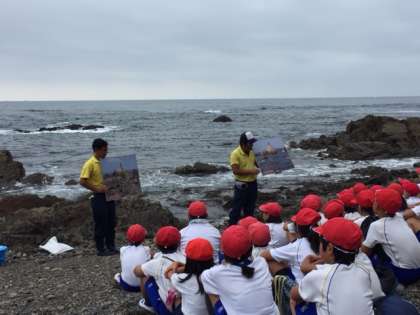 また,一人ひとり,ヒトデを触ったり観察したりして,その生態を学習しています。
