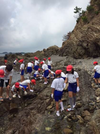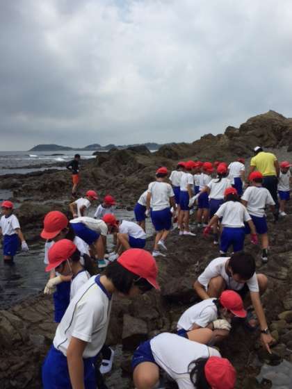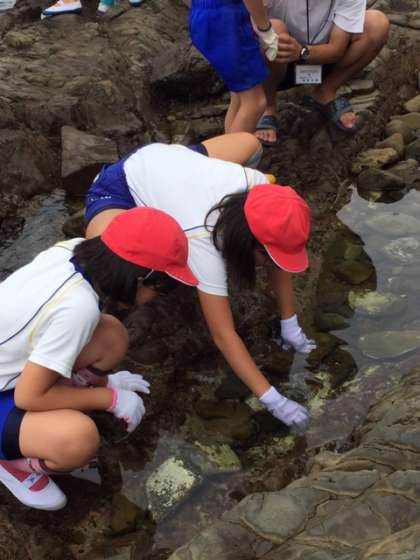 磯観察をしている子どもたちの様子です。