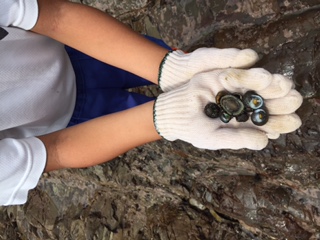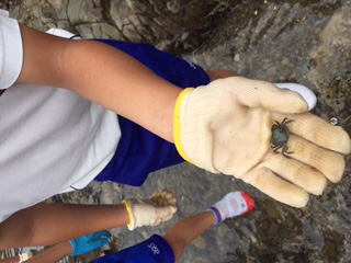 ヒトデ,かに,貝など,いろいろな海の生き物を見つけることができました。