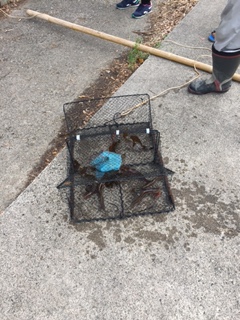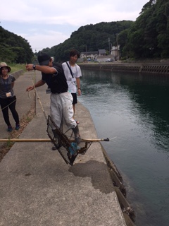 あさに投げ入れたかごの引き上げをしました。