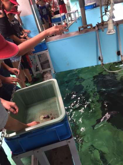 途中、海女さんのエサやり実演の裏側を見ることができました。