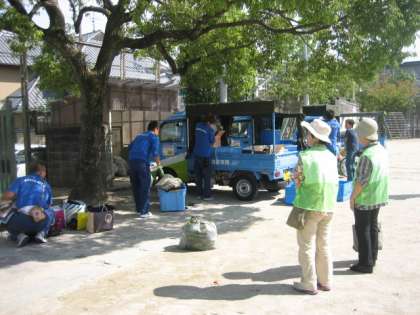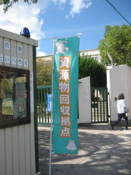 今日の2時から3時の1時間,広沢小学校正門を入ったところで,移動式拠点回収(資源物回収)を行っています。