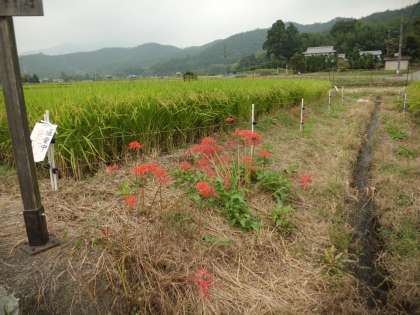 ひがん花やコスモスがたくさん咲いていて,秋の虫もいろんな種類の鳴き声が聞かれました。