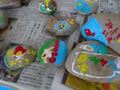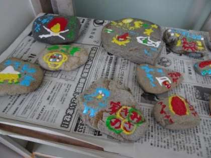 先週,みさきの家での思い出を磯観察を行った際に拾った石に描きました。石を見ながら,みさきの家での楽しかった思い出を思い出す毎日です。