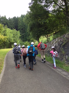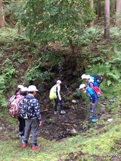 自然がいっぱいの山の家。目と耳と鼻をつかって小動物や植物,こん虫などの自然の宝物を探しました。