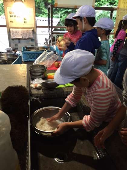 昨日の野外炊事で学んだことを生かして,今日はカレーライス作りです。
