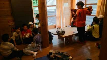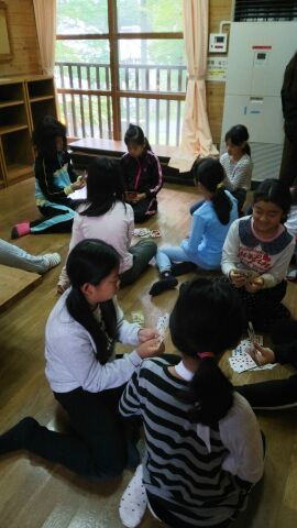 雨のため,予定していた登山が中止になりました。朝の集いもなくなったので,子どもたちは朝食までのんびりと過ごしています。