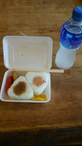 山で食べるはずだったおにぎり弁当を食堂でいただきました。