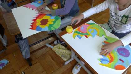 アイスクリームが出てくるたまご。たこ焼きが出てくるたまご。友だちが出てくるたまご。完成が楽しみです。来週の参観日に掲示する予定です。
