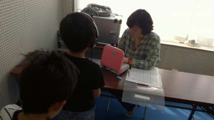 今日は聴力検査でした。放送室で,2種類の音を聞き分けます。