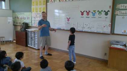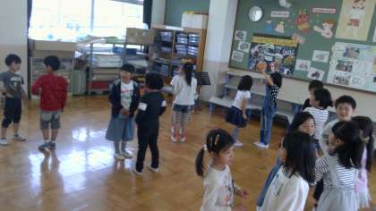 久しぶりのアンディ先生の英語です。今日は,友だちとあいさつをしながら,相手の調子を聞くという活動でした。