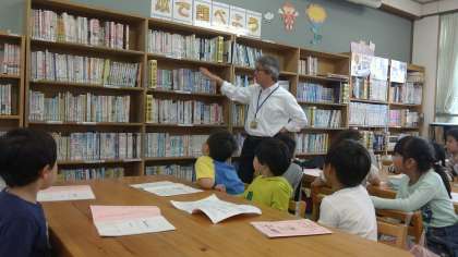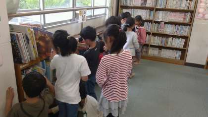 今日は図書室に行きました。1年間使ってきた図書室でしたが,本の並び方をもう一度復習です。みんながよく使うのは分類番号9とEです。