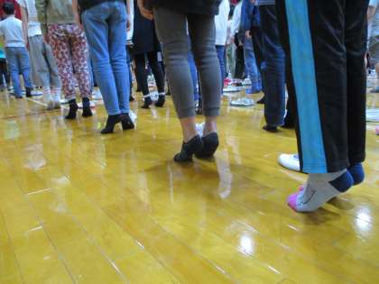 1時間目に全校ではだし開き集会がありました。先生方からはだし生活の約束を聞き,全校でつま先立ちをしました。