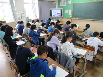 その後、教室で,1年間の素足はだしの目標や心・からだキラピカ生活目標を考えました。6年間の集大成としてはだし生活でも全校のお手本になってもらえたらと思います。