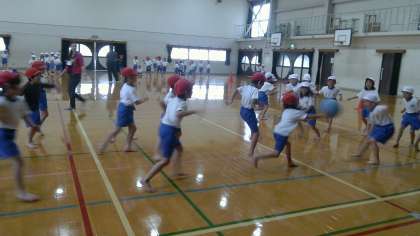 今日の体育は50m走の予定でしたが,運動場がゆるくて使えないので体育館での活動になりました。