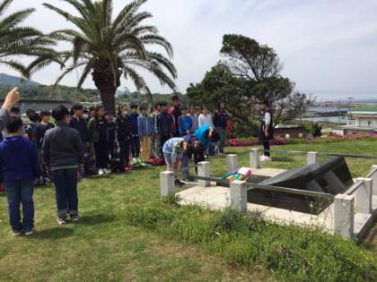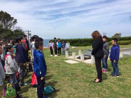北淡震災記念館では,震災で亡くなられた方々へのご冥福をお祈りし,全校児童の思いがこもった折鶴を贈呈しました。