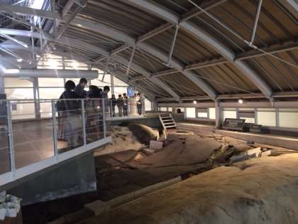 記念館には地震によってずれた断層が保存され,メモリアルハウスでは家の様子が再現されています。
