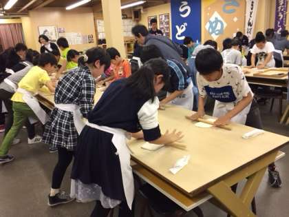 11時半前に「中野うどん学校」に到着しました。ここも今年度,初めて訪れるところです。うどん打ち体験をしています。