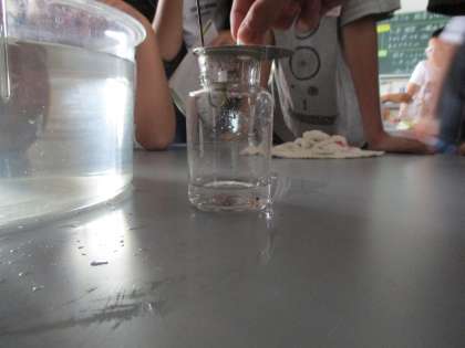 激しく燃えている様子や一瞬で消える様子をしっかりと観察することができました。実験の最後には,酸素を集めた集気びんに燃えているスチールウールを入れたらどうなるかを実験しました。