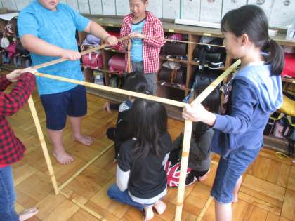 算数科「体積」の学習で,1㎥の大きさをつくってみました。