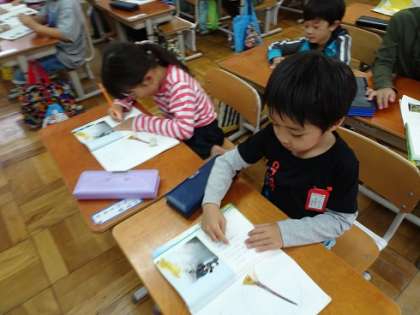 鳥やくちばしについて,知っていることを話し合い,今日は,どんな鳥について文章が書かれているのかをじっくりと読み取りました。「くちばし」のお話には,3種の鳥が出てきます。それぞれの鳥のもつくちばしには特徴があり,それらを使って鳥たちは,うまく暮らしています。そのようなことをこれからの学習で読み取ったり,学習の最後には,「くちばし」で学習したことを活かして,「動物クイズ」をそれぞれの子どもたちが作れたらいいなと思っています。