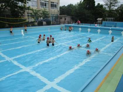 今日は,昨日の学習を活かして,少し学習を進めました。今日のめあては,「水となかよくなろう!」でした。水の中で,でんしゃごっこをしたりおにごっこをしたり,宝探しもしました。子どもたちに学習の振り返りを聞くと,「水と仲良くなれた!」と笑顔の子どもたちが多かったです。