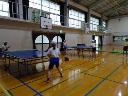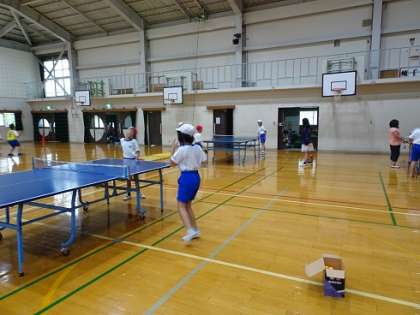 初めてラケットを持った子どもたちもいたようで,なかなか小さいピン球を打つのは,難しそうでした。これから,毎週,部活動に取り組む中で,ラリーが長く続くようになったり,試合ができるようになったりしていきたいなと思っています。