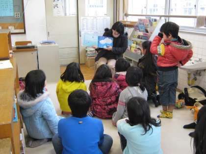 絵本を楽しむ会が開かれ、図書室で絵本の読み聞かせをして頂きました。