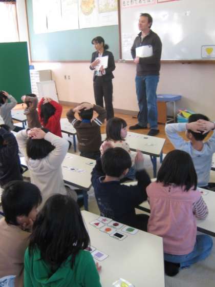 1年生〜6年生まで公開授業を行ないましたが、参加者の皆さんは熱心にメモを取りながら授業を参観しておられました。子どもたちの様子を見ながらうなずいたり微笑んだりする姿が見られました。子どもたちはたくさんの参加者の方が見ておられたので、多少緊張気味でしたが、楽しく英語活動に取り組んでいました。