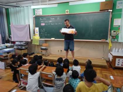 9月10日(月),今日の英語から「すきなくだものなあに?」の学習を始めました。この単元では,友だちに好きな果物を聞いたり答えたりするコミュニケーション活動を行いたいと思っています。今日は,みんなが大好きな「はらぺこあおむし」の絵本をアンディー先生に読んでもらい,いろいろな果物の英語での言い方を知りました。果物の英語は,聞き慣れたものがいくつもあったようで,子どもたちはスムーズに学習に臨むことができていました。