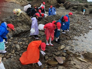 磯観察では,磯に住む小さな生き物や,きれいな貝殻などを見ることができました。