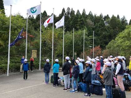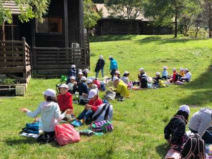 無事に山の家に到着しました。現地は涼しいようです。入所式を済ませた後,少し早めの昼食をとりました。