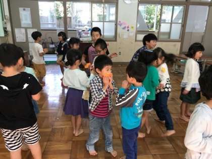「すきなくだものなあに?」の学習も今日で4回目です。いろいろな果物を英語で言ったり,友だちに好きな果物を聞いたりすることには,ずいぶん慣れてきたようです。カードを使ったゲームにもとても積極的に取り組むことができ,大盛り上がりでした。