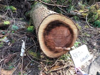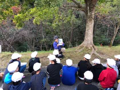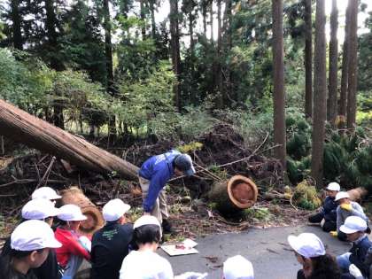 自然観察に出かけました。山の家のインストラクターさんに,いろいろなことを教えていただきました。木の年輪も数えました。