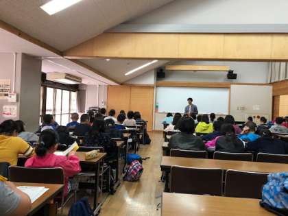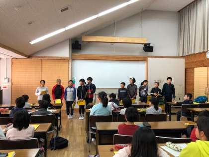 班ごとに4日間の活動を振り返ります。それぞれの班から出た意見は,各班のリーダーから報告がありました。