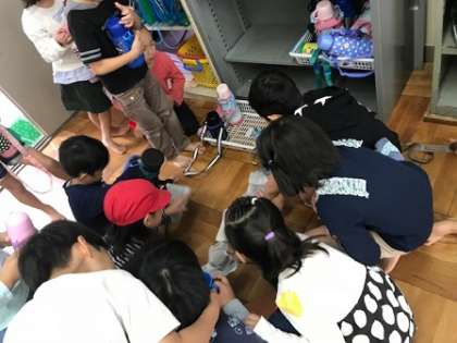 水筒のお茶がこぼれていた時,自分がこぼしたわけではないけれど,急いでぞうきんを取りに行って濡れた場所を拭いている子どもたちがいました。一生懸命きれいにしている様子を見た友だちは,「手伝う!」と言って一緒に片付け。とっても素敵な姿だなと感じました。