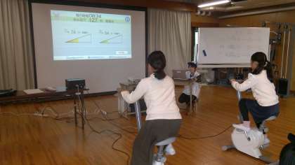 2日(金),4年生は日新電機の方に来ていただき,エコ発電について学習しました。総合的な学習の時間で,エコライフについて学習を進めている4年生ですが,エコ発電が体験できるとあって,とても楽しみにしていた学習です。お話を聞くトレーニングルームに行くと,もう自転車での発電が用意されていて,興味津々!