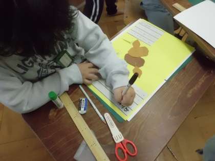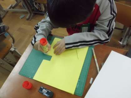 カードはハサミで切込みを入れて,作りました。そのほか,カッターナイフを使って,窓のようなものを作っています。完成が楽しみです。