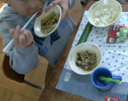 15日(木) 給食のメニューに「ブッロコリーのおかか煮」がでました。食缶を開けたとき「ブロッコリーや」という声と共に苦手という声がありました。しかし,一口食べて「おいしい」「おかかもあるやん」「家ではマヨネーズやけど,おかかもいいやん」と食べていました。