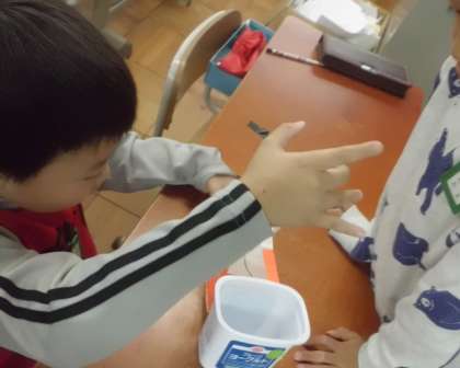 材料を揃えては作り,作っては付け加えるために材料を考えて,という繰り返しをしています。どんなおもちゃができるか楽しみです。